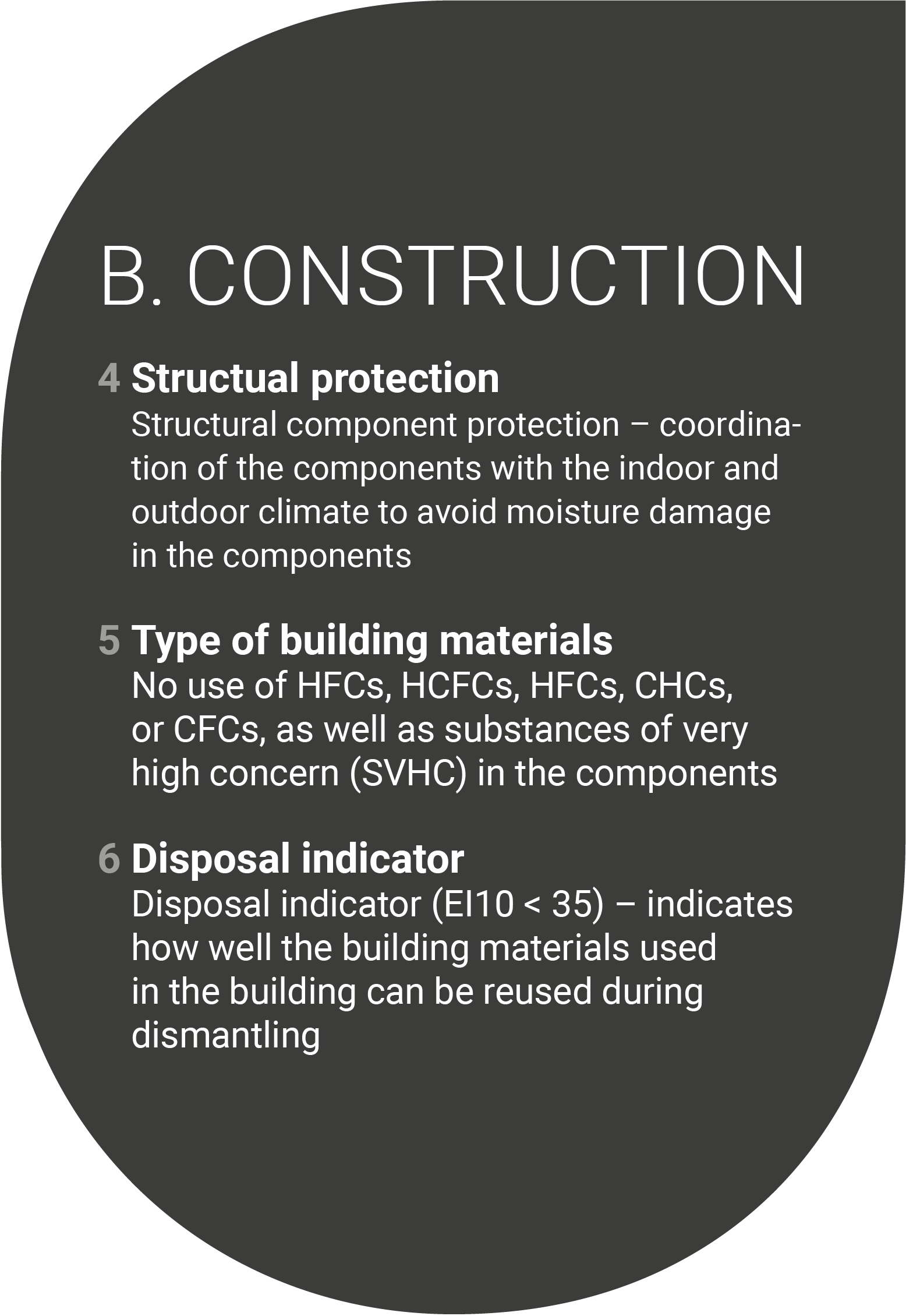Society wants to make the best possible use of the energy used to produce the building materials. The materials used should remain in use for as long as possible. The priority is to ensure that the building remains in use for as long as possible. Therefore, materials that do not contain any substances that are harmful to health have to be used. This is to counteract the risk that they will have to be removed again for legal reasons a few years after completion. If the use of the building has to be changed, care must be taken to ensure that the materials can be reused as far as possible when it is demolished.